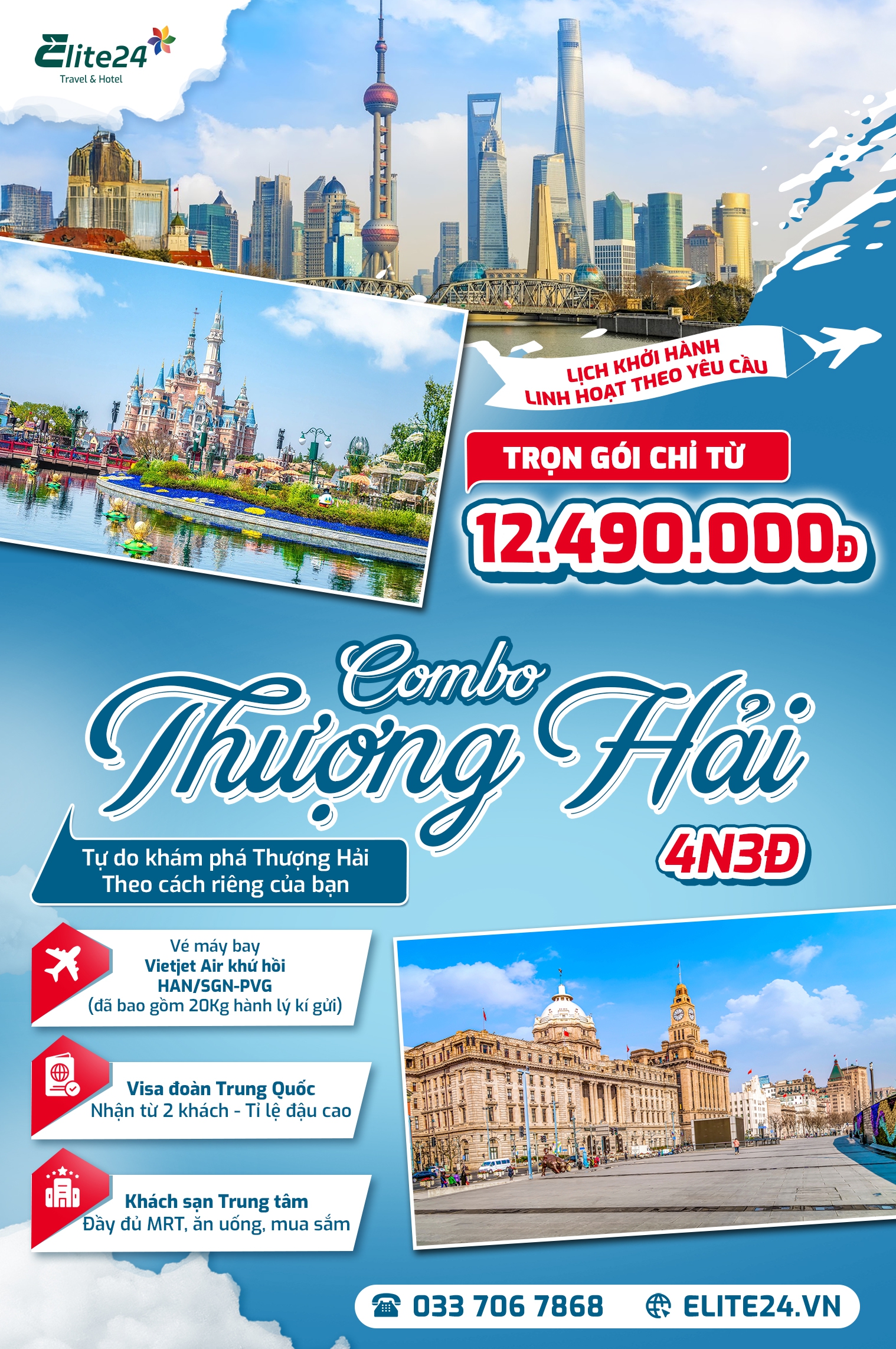 Elite24 chính thức ra mắt COMBO THƯỢNG HẢI 4N3Đ giá chỉ từ 12.490.000đ – bay thẳng Vietjet Air, khách sạn trung tâm và bao gồm visa đoàn tiện lợi.