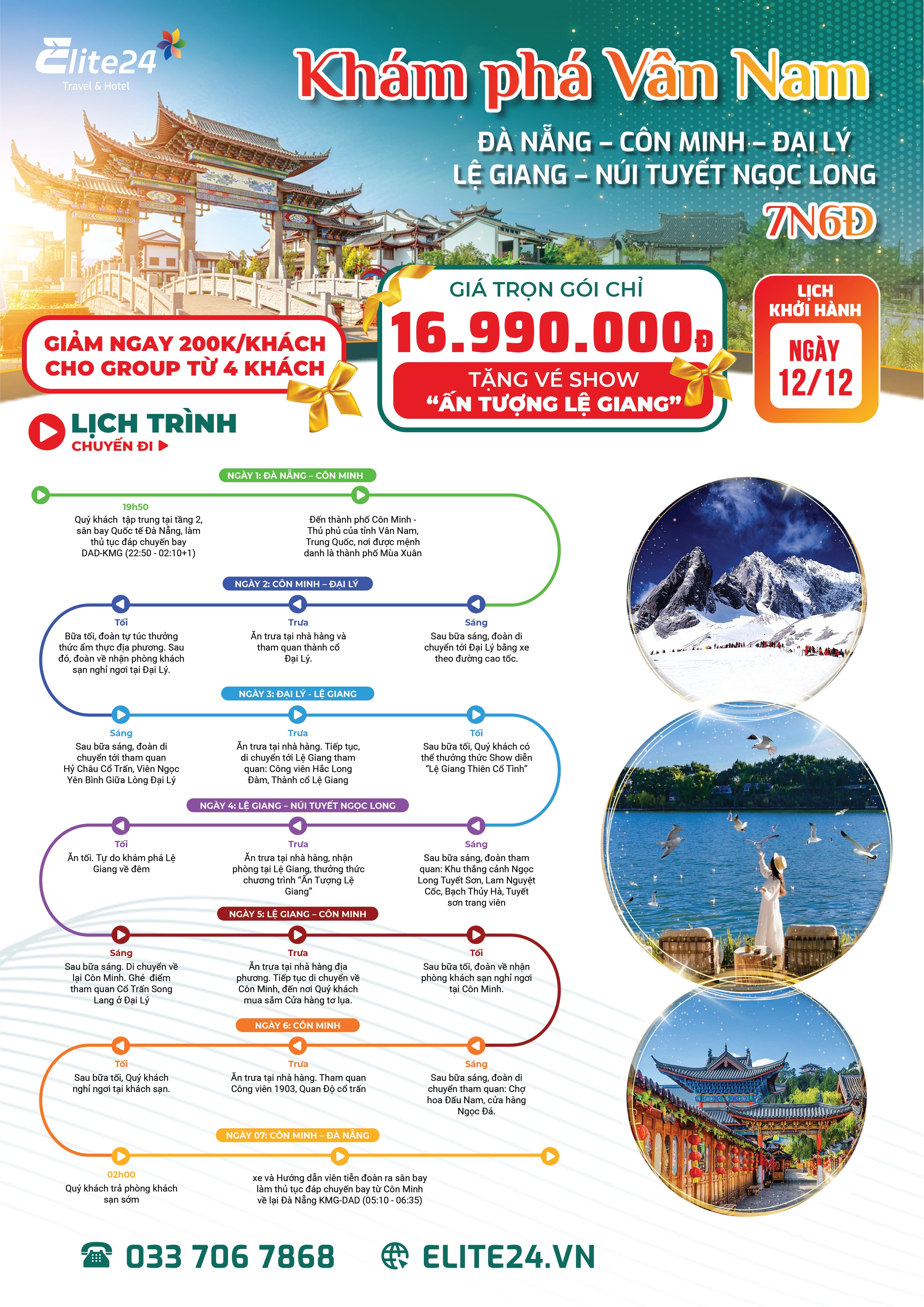 Tour Vân Nam mùa tuyết 7N6Đ từ Đà Nẵng – Côn Minh • Đại Lý • Lệ Giang | Giá chỉ 16.99 triệu