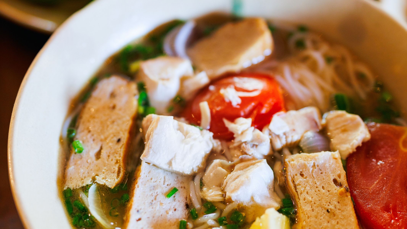 Không chỉ đơn giản là sự kết hợp giữa bột gạo, chả cá, thịt, tôm hay trứng cút, điểm đặc biệt làm nên sự khác biệt chính là phần cá nướng. Cá chỉ vàng hoặc cá ngừ được tẩm ướp, nướng chín rồi giã nhuyễn, phần thịt cá quyện cùng nước dùng ngọt thanh, tạo nên hương vị dân dã nhưng vô cùng đậm đà.